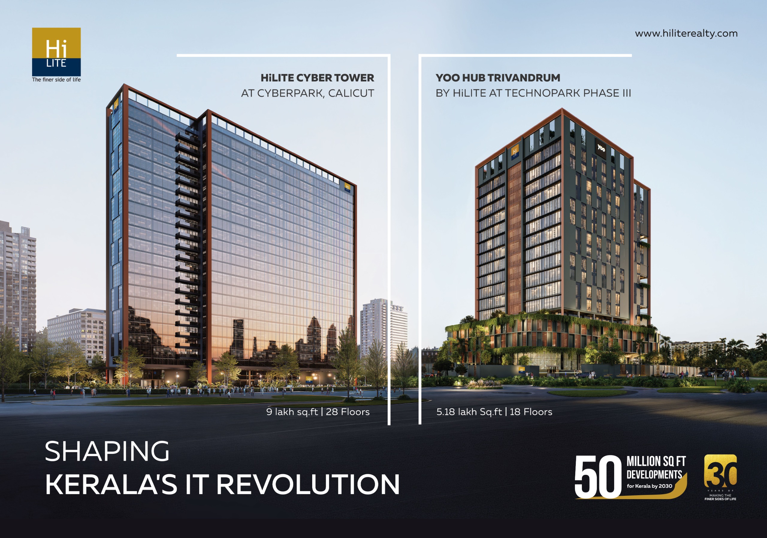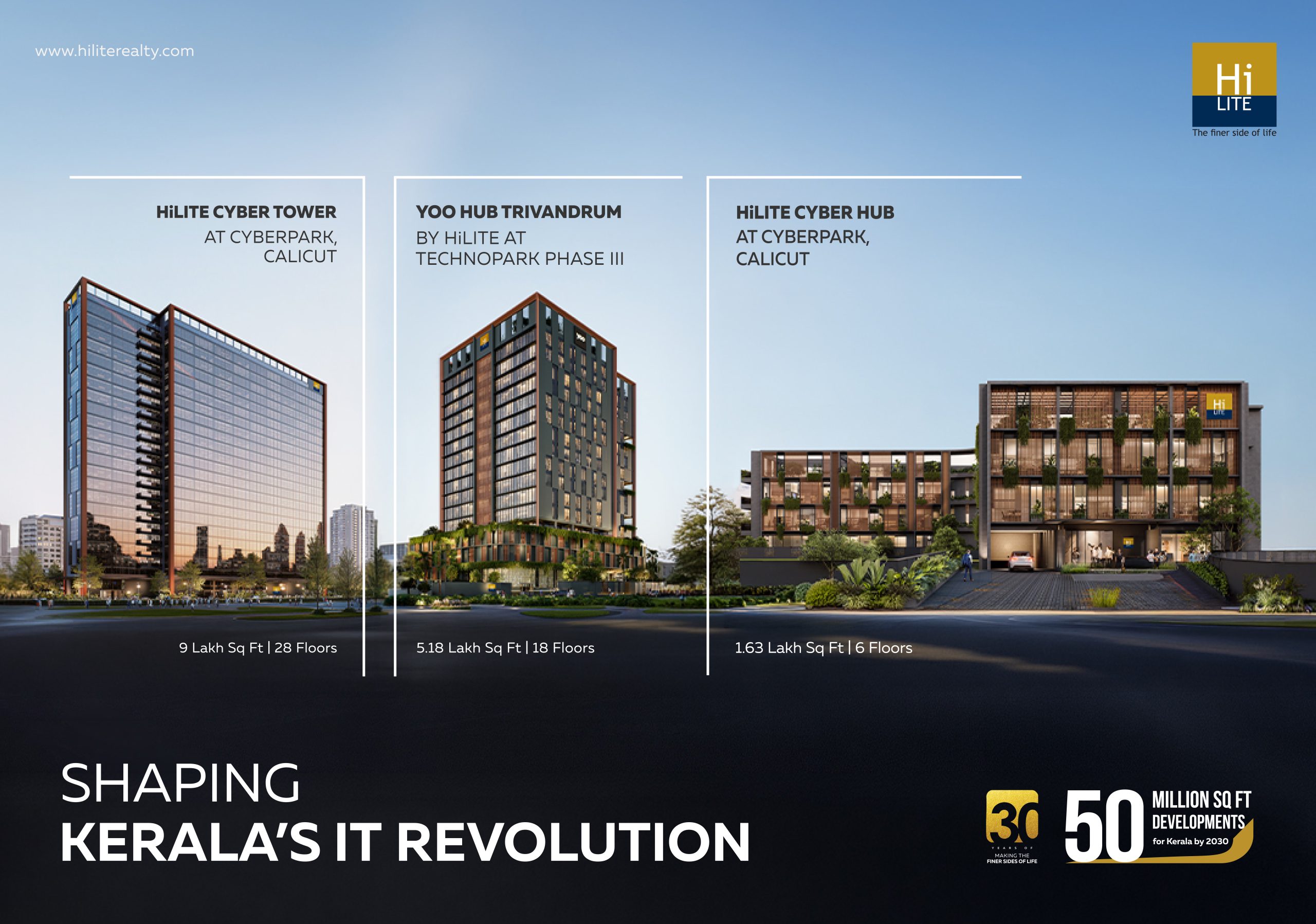 YOO Hub Trivandrum by HiLITE Group is Kerala’s first branded IT Park, developed at Technopark Phase III, Thiruvananthapuram. Spanning 5.18 lakh sq. ft. across 1.88 acres of land, the development comprises 18 floors. The project marks YOO’s first dedicated IT Park globally, bringing internationally recognised, design-led excellence into Kerala’s evolving technology ecosystem. The development is expected to generate around 4,000 direct IT jobs, strengthening regional employment and supporting talent development.